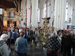 Met een deskundige gids erbij is zo’n rondleiding toch weer een extra boeiende ervaring. Je wordt gewezen op bouwstijlen of ornamenten, die nog nooit opgevallen zijn. Na de rondleiding vertrokken we naar het Jheronimus Bosch Art Center, waar de alom geroemde Bosche Bol met koffie al op ons wachtte. Die ging er letterlijk en figuurlijk in als koek. Het Art Center is gevestigd in een oude kerk. Dit geeft het museum een bijzondere uitstraling. We werden in groepen opgedeeld en rondgeleid door het museum. Velen van ons gingen (omdat de ruimte er vrij beperkt is) zelfstandig op speurtocht uit. Je houdt van Jeroen Bosch of je houdt er niet van, maar te zien is er genoeg. De opmerkingen over de schilderijen waren dan ook zeer divers. Hij was zijn tijd ver vooruit, als het om het gebruik van stimulerende middelen zou gaan, die hij gebruikt zou kunnen hebben. Wat een fantasieën had die man. Je zou er inderdaad bijna nachtmerries van krijgen.
