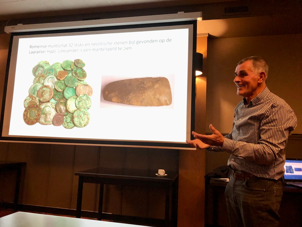 Een schat gevonden in het Land van Cuijk! Vertel het verhaal door, want archeologie moet leven aldus Jan Kusters uit Vianen, lid van de werkgroep Archeologie Cuijk (WAC). Hij heeft talrijke schatten, potjes met romeinse munten gevonden, zo vertelde hij op 2 november aan de leden van de Historische Kring Land van Cuijk. Hij is het meest trots op vuurstenen, gevonden bij Oeffelt, die 10.000 jaar oud zijn. Hier doet het Rijk nu onderzoek naar. De Romeinse weg tussen Nijmegen en Boxmeer heeft hij onder andere opgespoord in de bodem en in kaart gebracht. Die weg is herkenbaar aan grind en leem, en ligt er gewoon echt. Meer hierover weten? Kom dan naar de tentoonstelling in het Archeologisch centrum in de Maasstraat 17 in Cuijk.