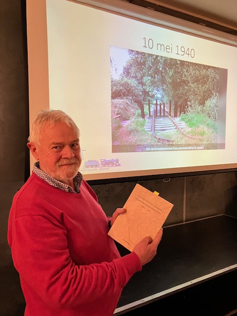 Hierna vertelde Tony Mouw ons aan de hand van een levendige presentatie over de Duitse inval in 1940 en de periode van voorbereiding, of het gebrek daaraan, in Nederland. Talloze documenten, kaarten, legerkleding etc. waren voor de dag gehaald om het geheel aan te kleden. Met zijn aanstekelijke presentatie hingen de leden van de vereniging aan zijn lippen. De presentatie was de kers op de taart van een zeer geslaagde middag in Overloon.